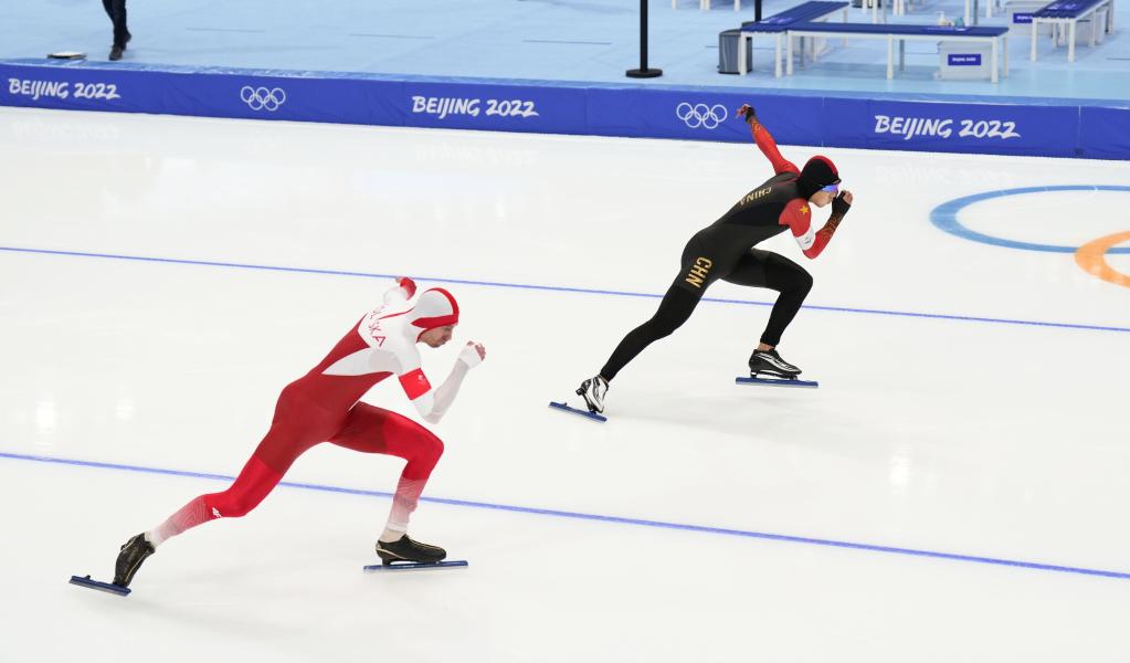 2月12日下午,国家速滑馆“冰丝带”。北京冬奥会速度滑冰男子500米比赛即将打响。