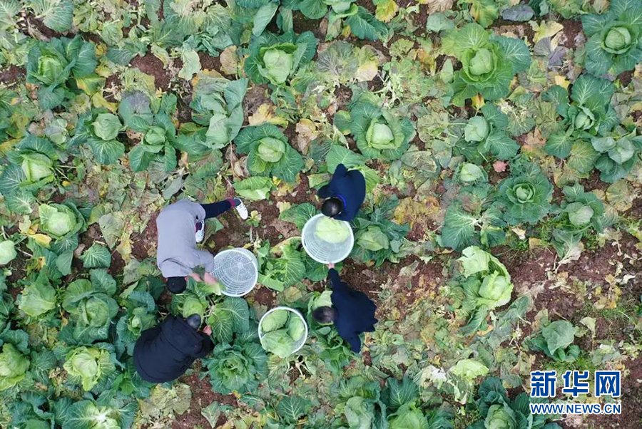 图为乡村振兴工作队队员们在黄常兴的蔬菜地里帮忙。新华网发(黄舒 摄)