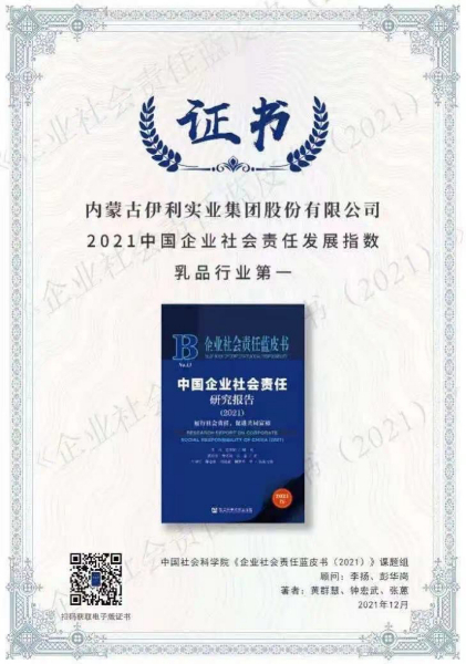 2007年,伊利发布了第一本《企业公民报告》,是当时国内第一家发布社会责任报告的民营企业。2022年是伊利连续第16年发布这份报告,现为《可持续发展报告》。《报告》以“共享健康可持续发展体系”即WISH体系为框架,披露了伊利落实产业链共赢、质量与创新、社会公益、营养与健康的行动进展。在中国社会科学院《企业社会责任蓝皮书(2021)》中,伊利正是凭借在这四大领域的进展成效,荣登“2021中国企业社会责任发展指数乳品行业第一”。